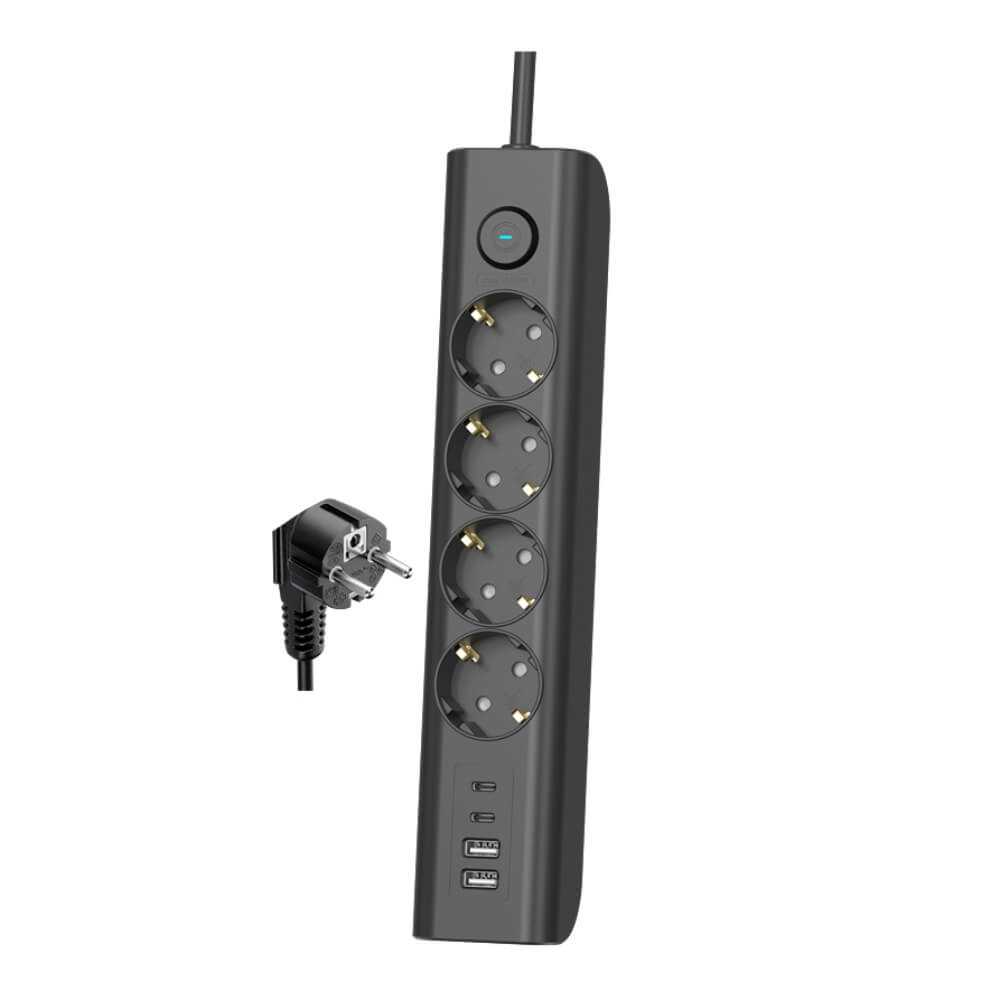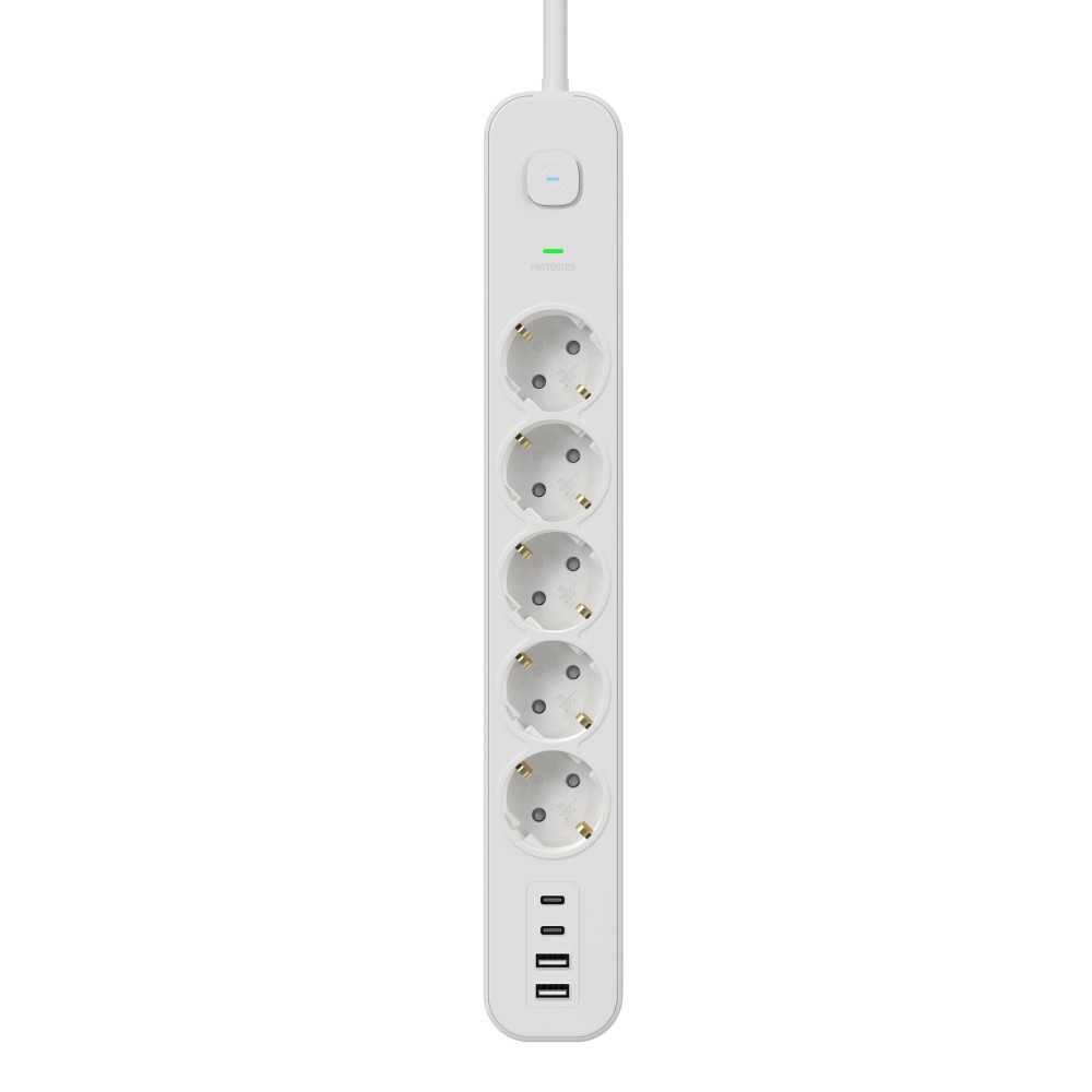 ELCO Pet utičnica i 2 USB-A + 2 USB-C 2m Produžni kabl sa prenaponskom zaštitom